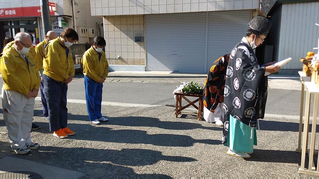 お正月用のお鏡餅、のし餅に用いるもち米を神主を招いて豊穣への感謝、ならびに食して下さる皆様の健康、益々のご発展をご祈祷頂きました。